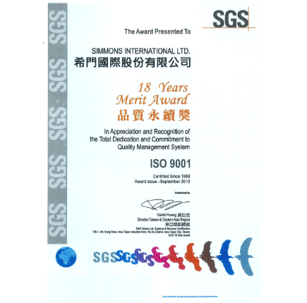 「鄧白氏台灣中小企業菁英獎」- 貿易領航獎 「最值得信賴供應商」殊榮 「最值得信賴供應商」殊榮 「最值得信賴供應商」殊榮 ISO 9001 品質永續獎 (自1998) ISO 9001:2015 國際品質認證